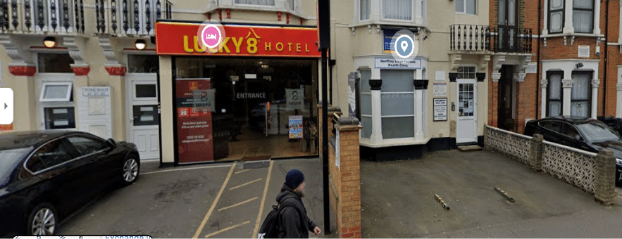 What is next to the clinic: Lucky 8 hotel